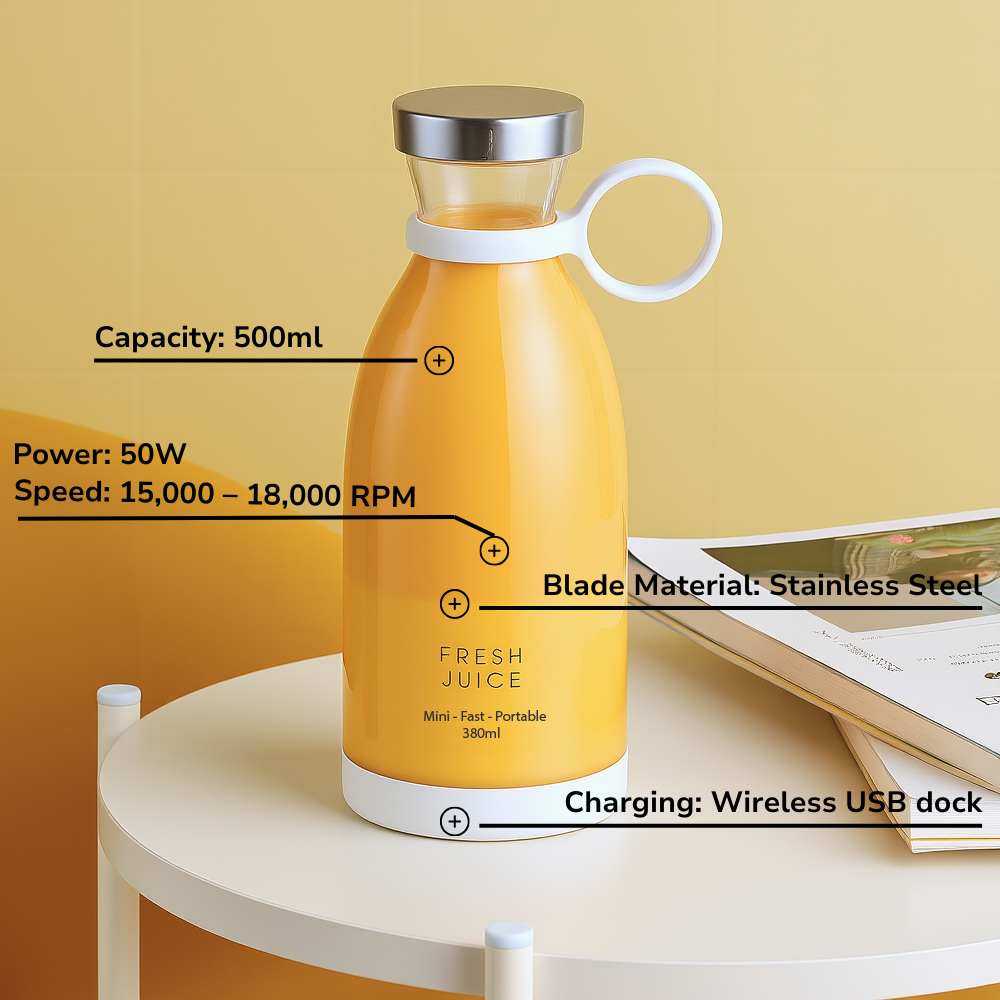 “One tap – the blades spin at 18,000 RPM. In just 30 seconds, you’ve got a smooth, refreshing drink to sip anywhere.”
